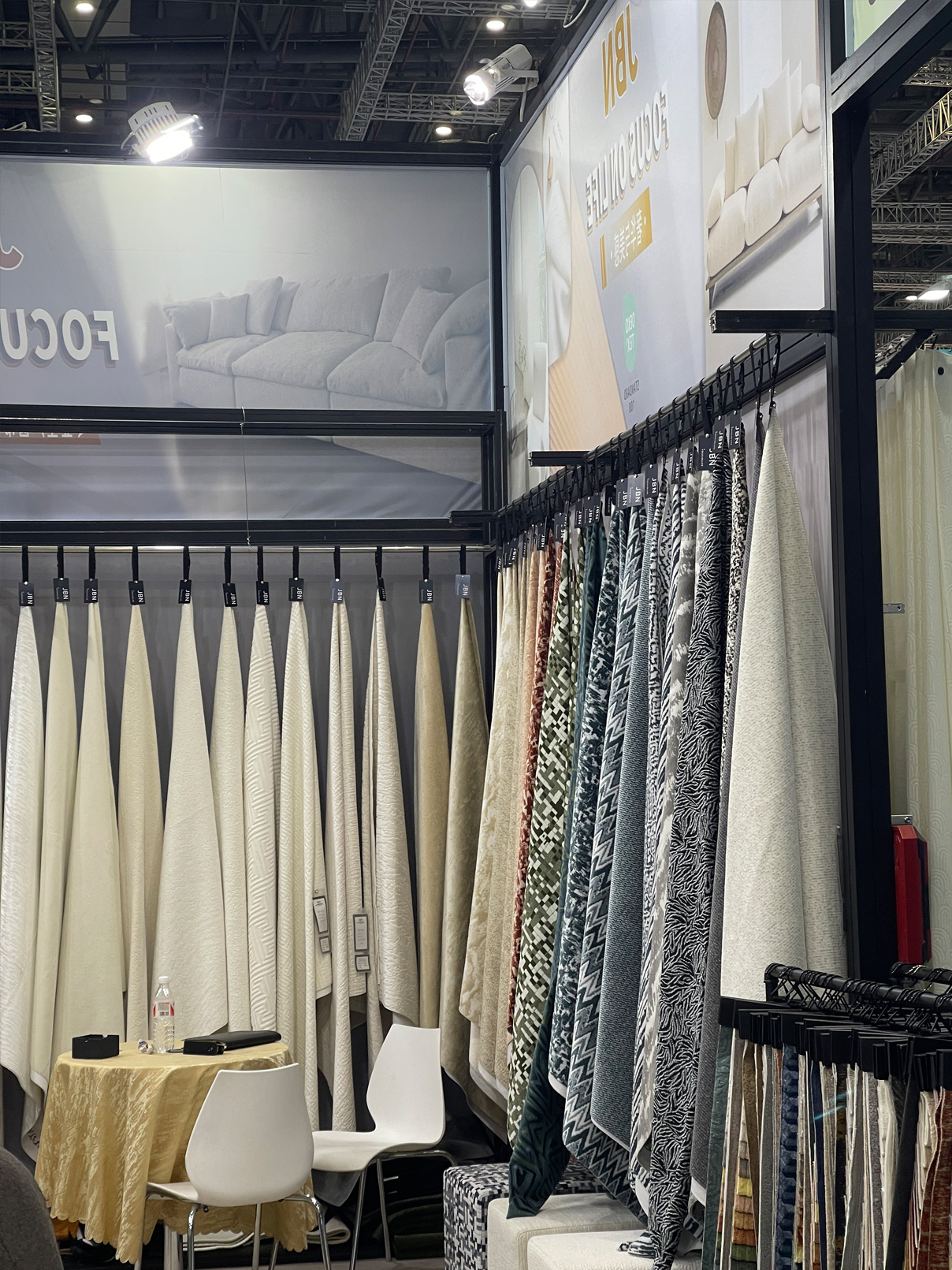 Home textile soft furnishing store display, Stoff Ausstellung Display, Client op der Plaz Prouf Auswiel, Designer Schema Display, brand sample booklet matching, soft furnishing company sample delivery, warehouse fabric classification management, etc.